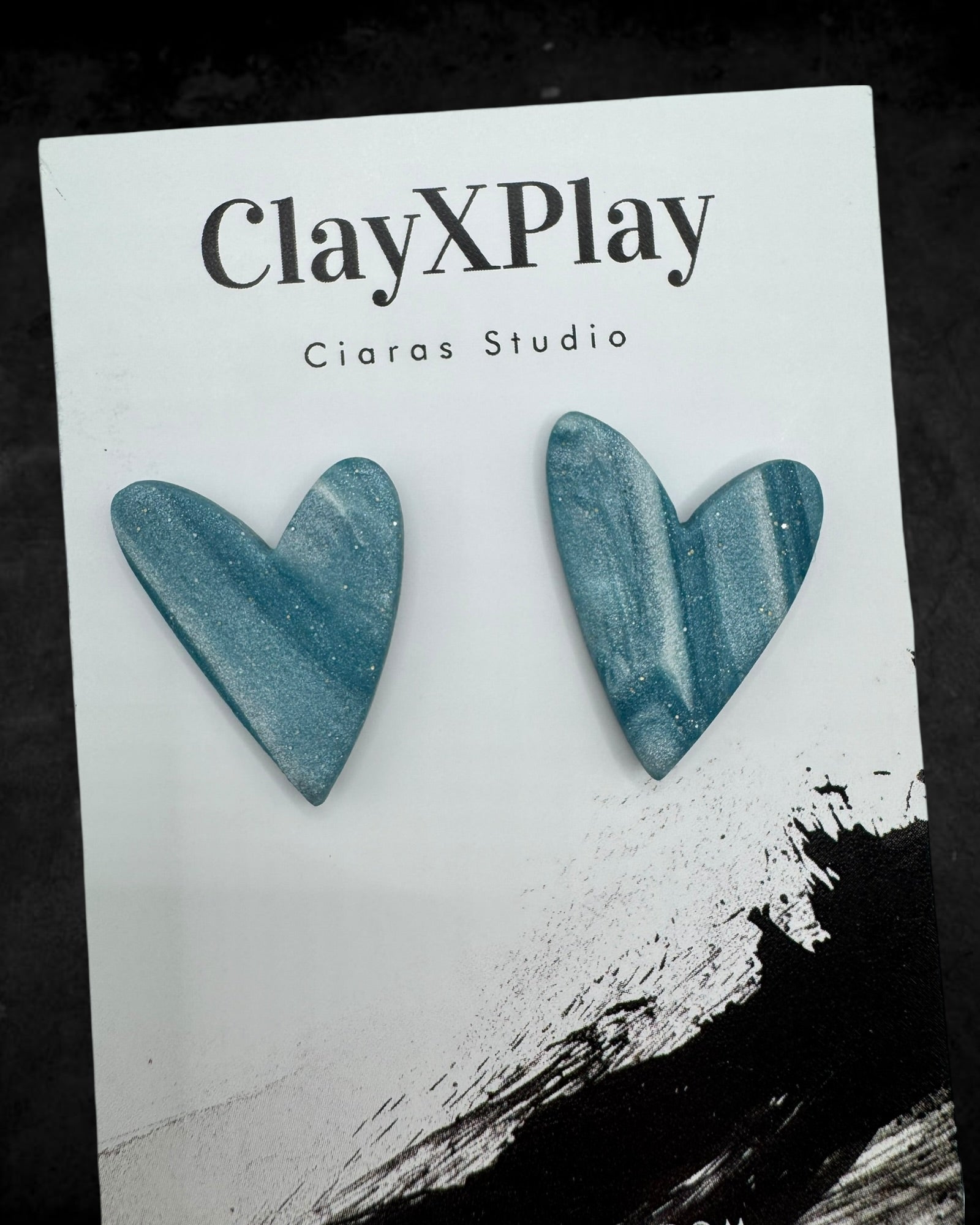 Blue & White Polymer Clay Heart Stud Earrings Handmade