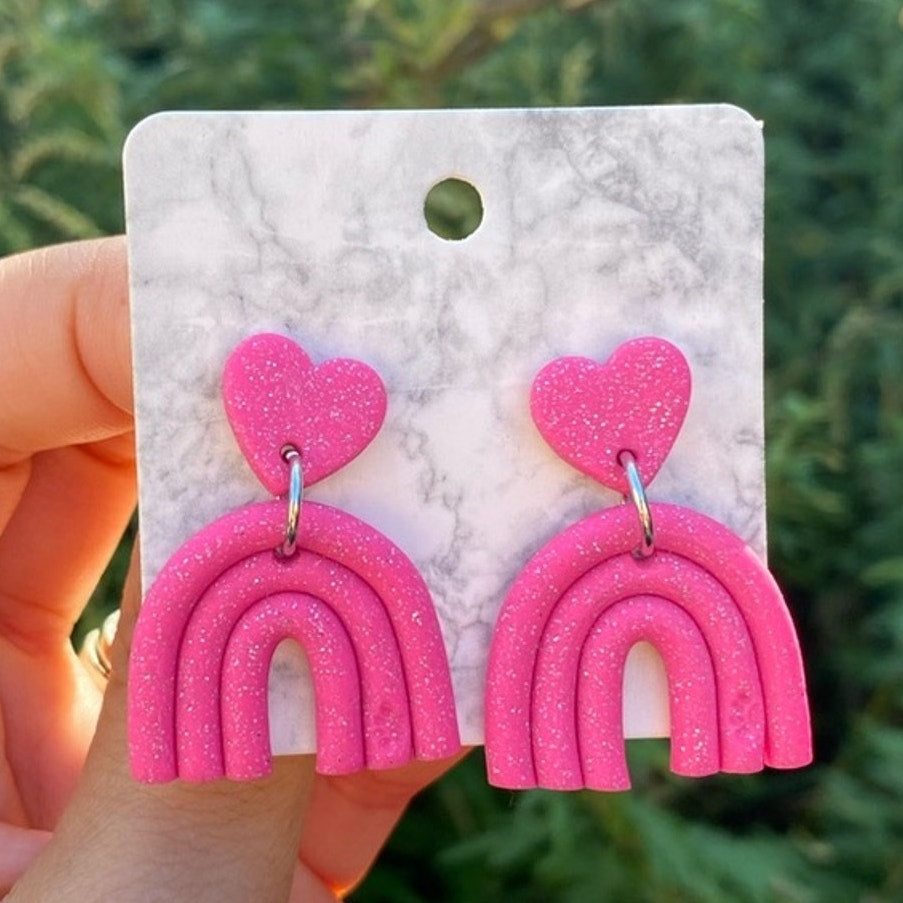 Pink Rainbow Dangles Polymer Clay Handmade Earrings