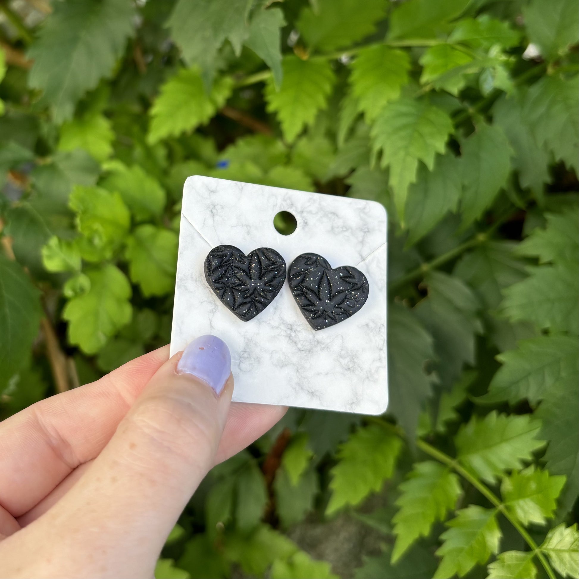 Medicated 420 Medium Black Polymer Clay Heart Stud Earrings Handmade