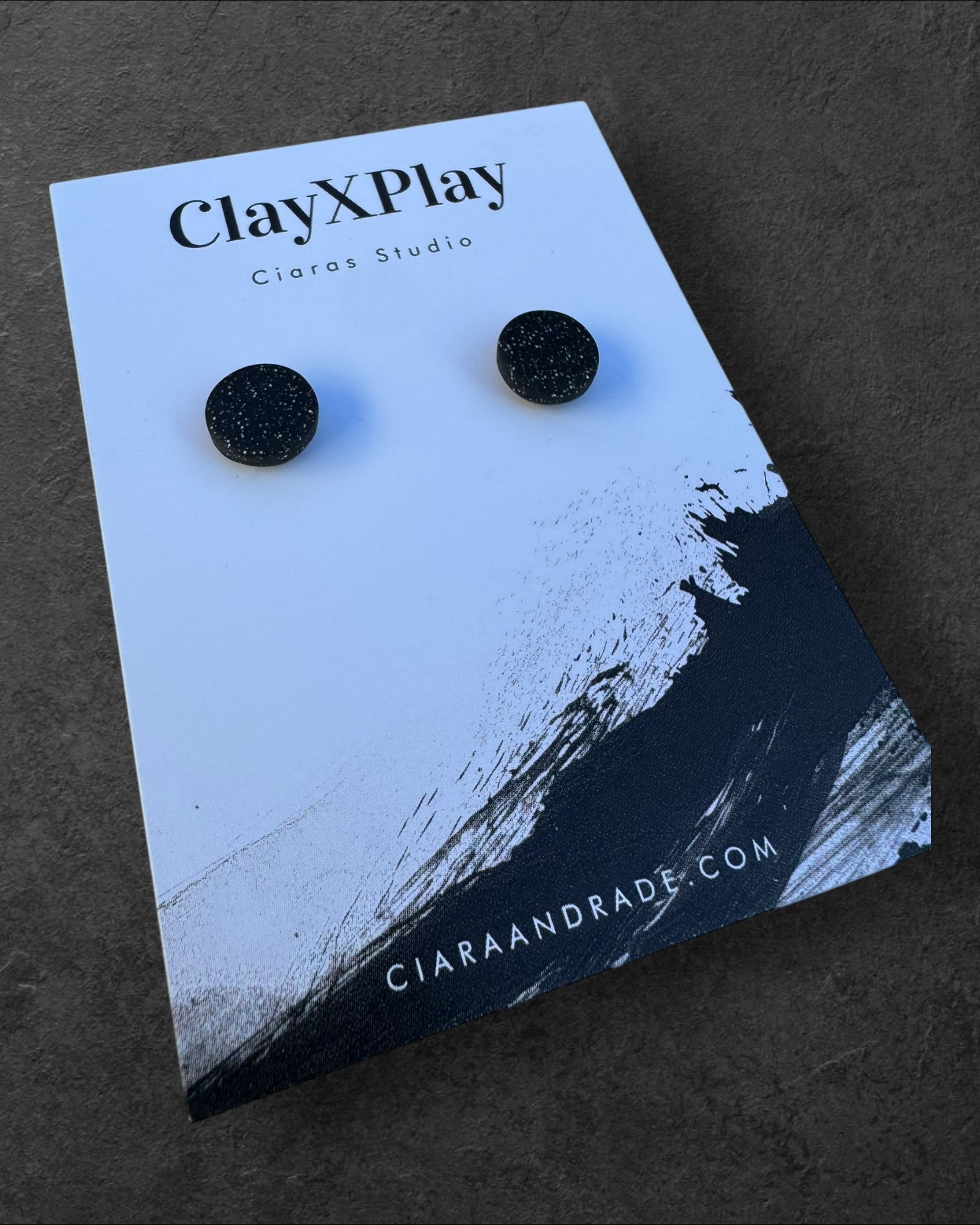 Black Mini Round Polymer Clay Stud Earrings Handmade