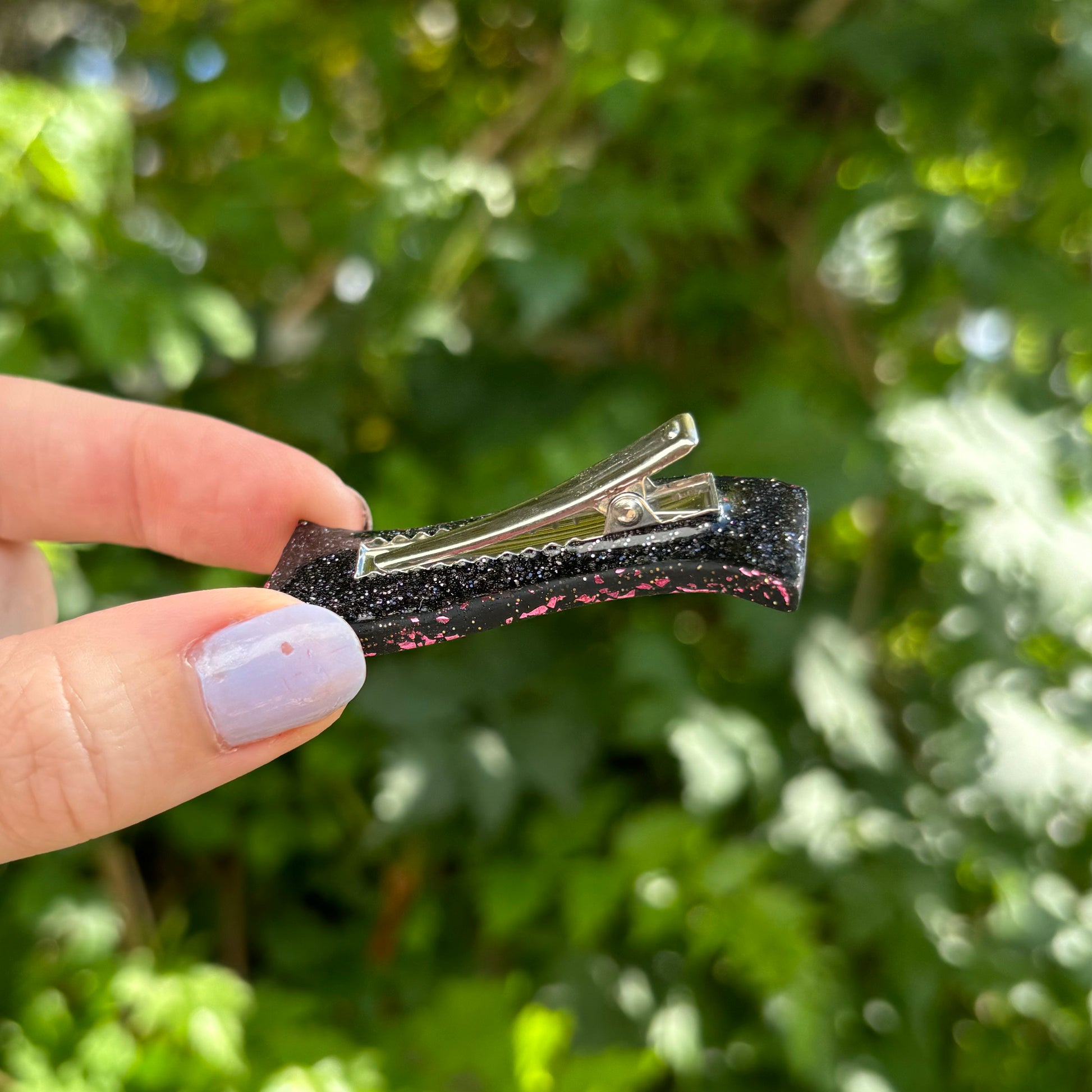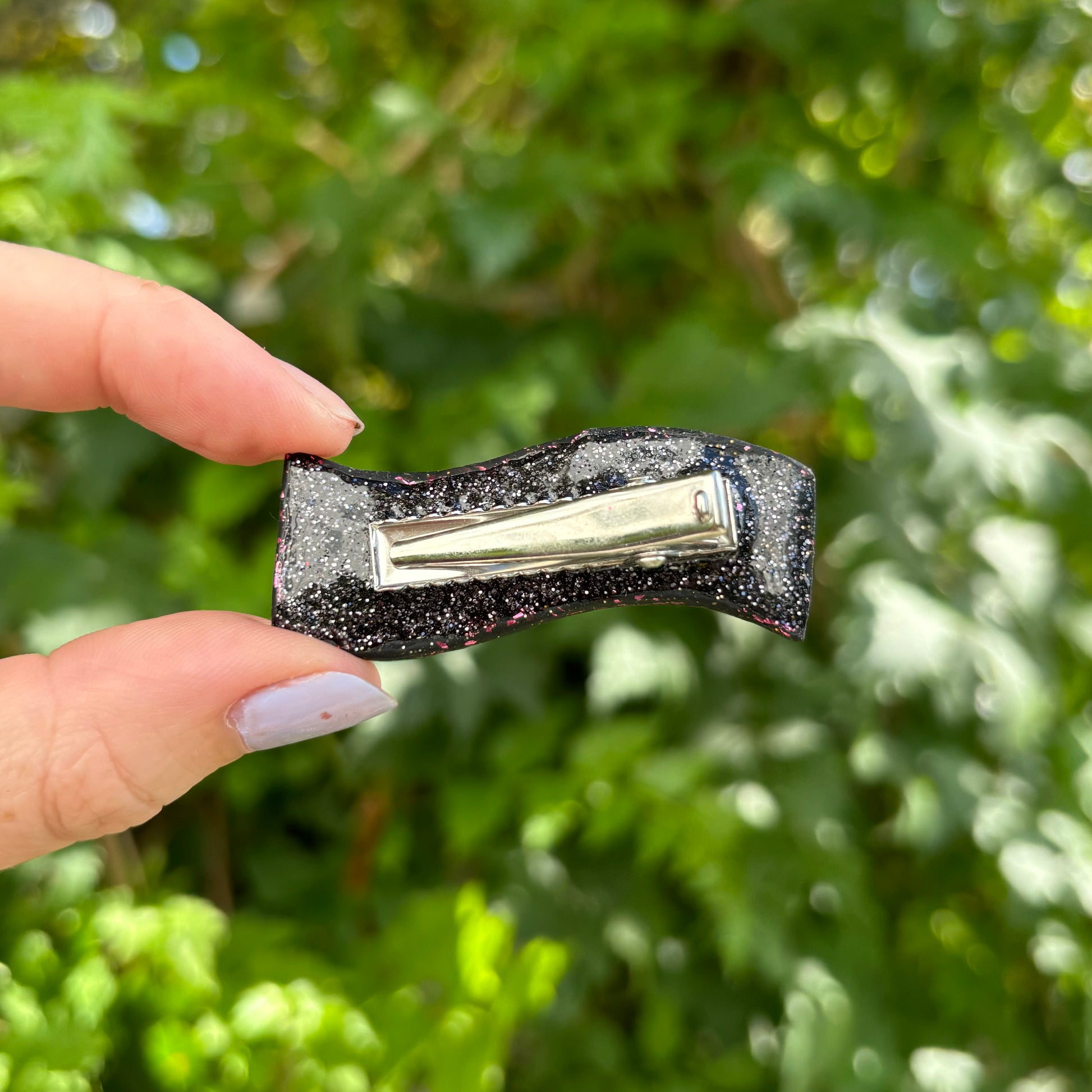 Fuck Off Pink Foil Polymer Clay Curved Hair Clip Handmade Hair Accessory
