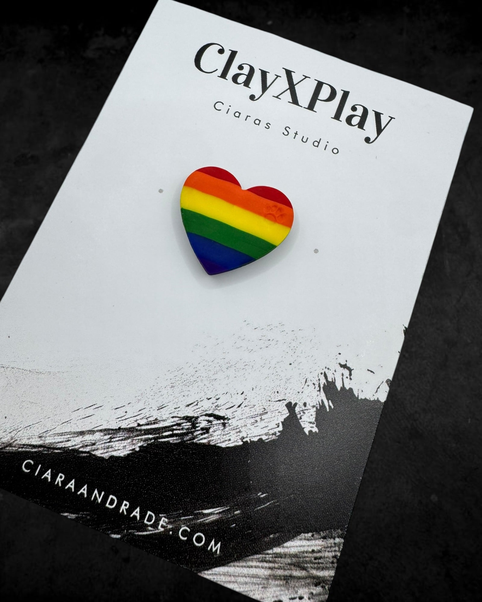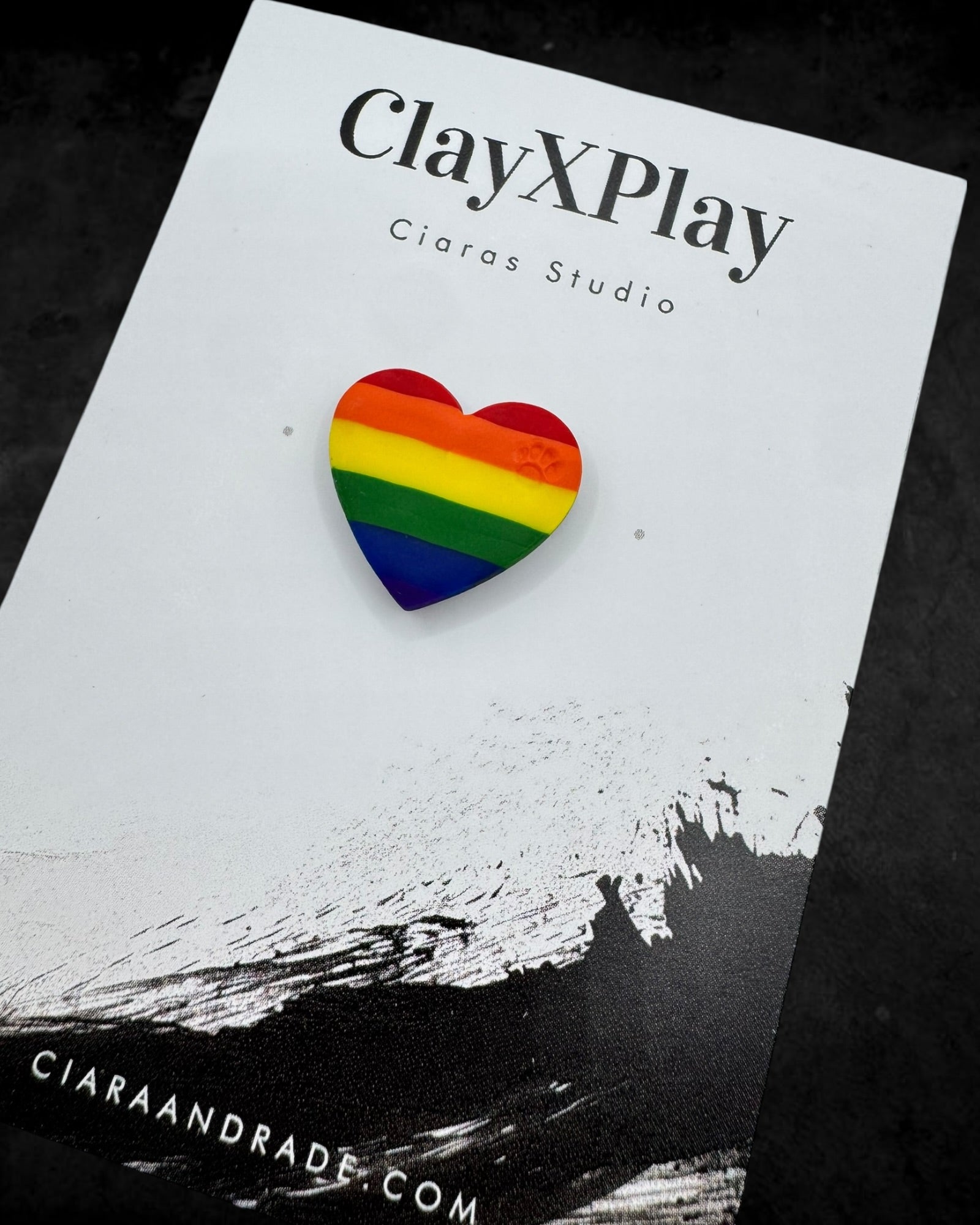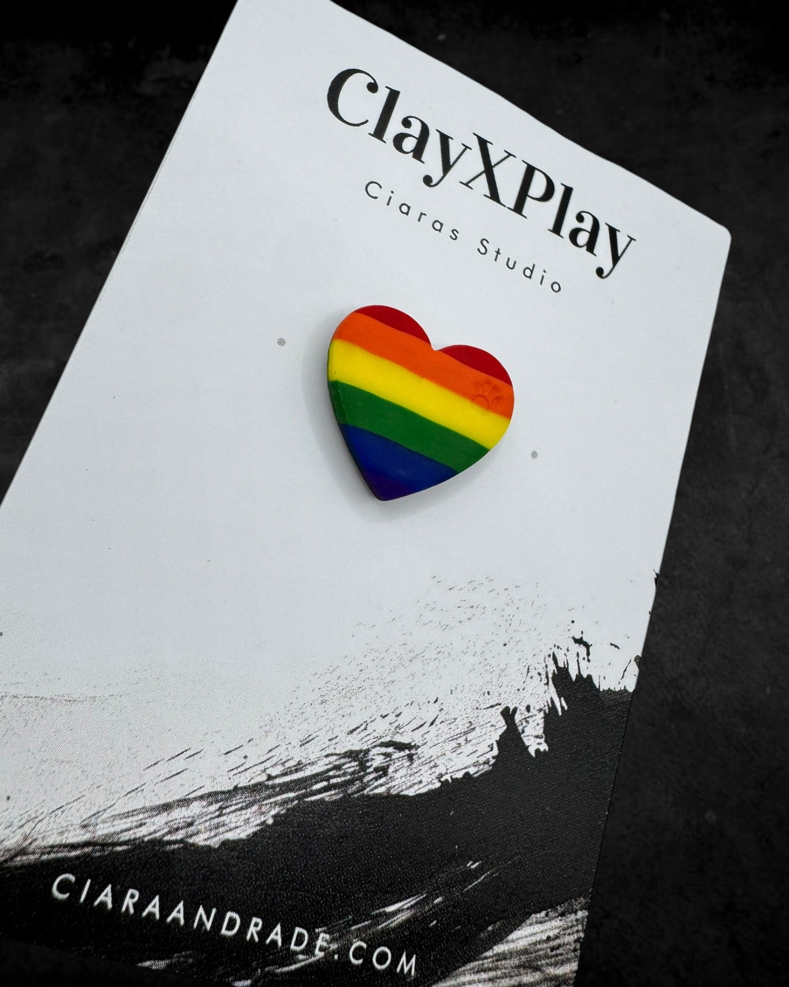 Rainbow Polymer Clay Heart Pin Handmade