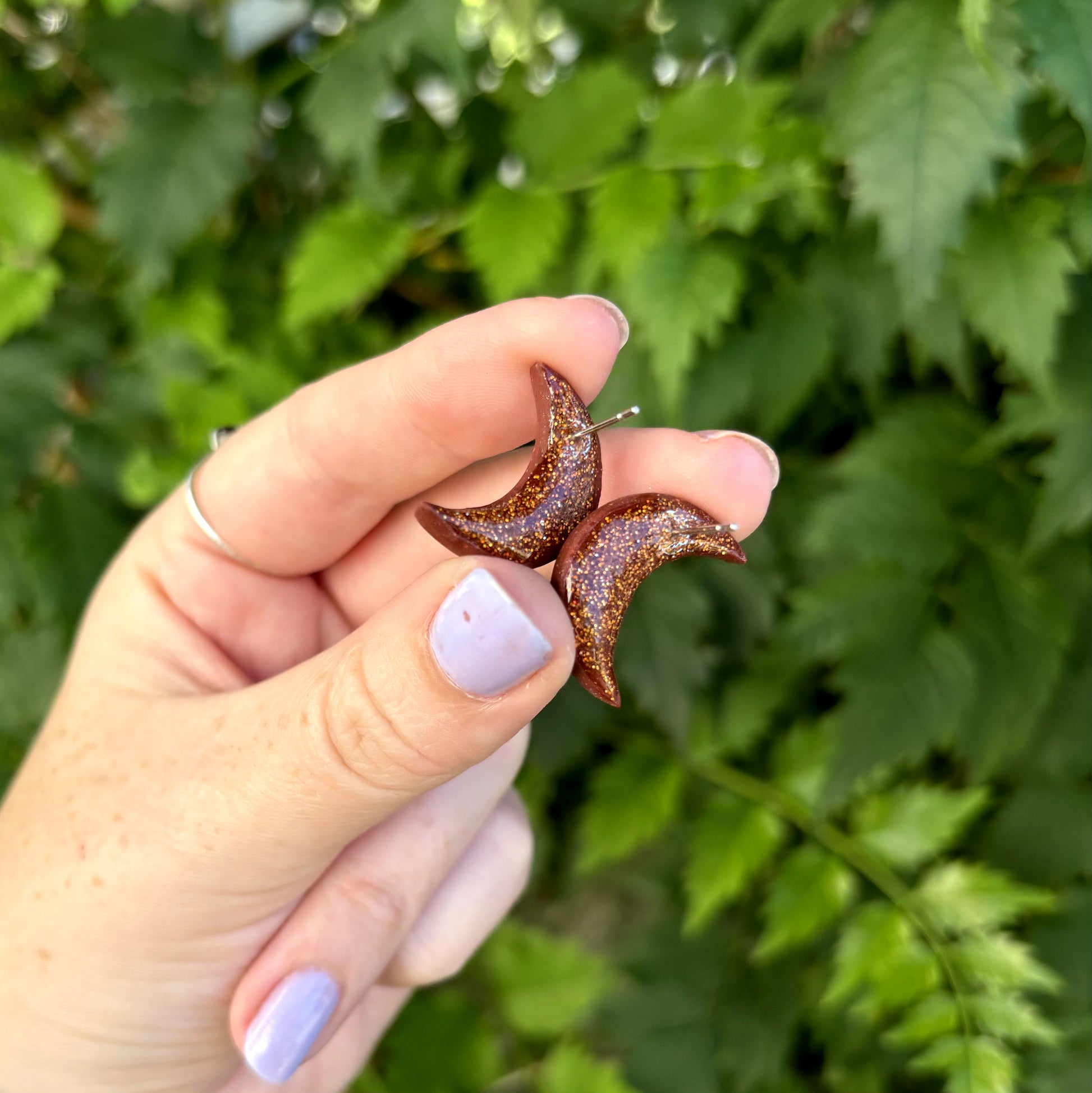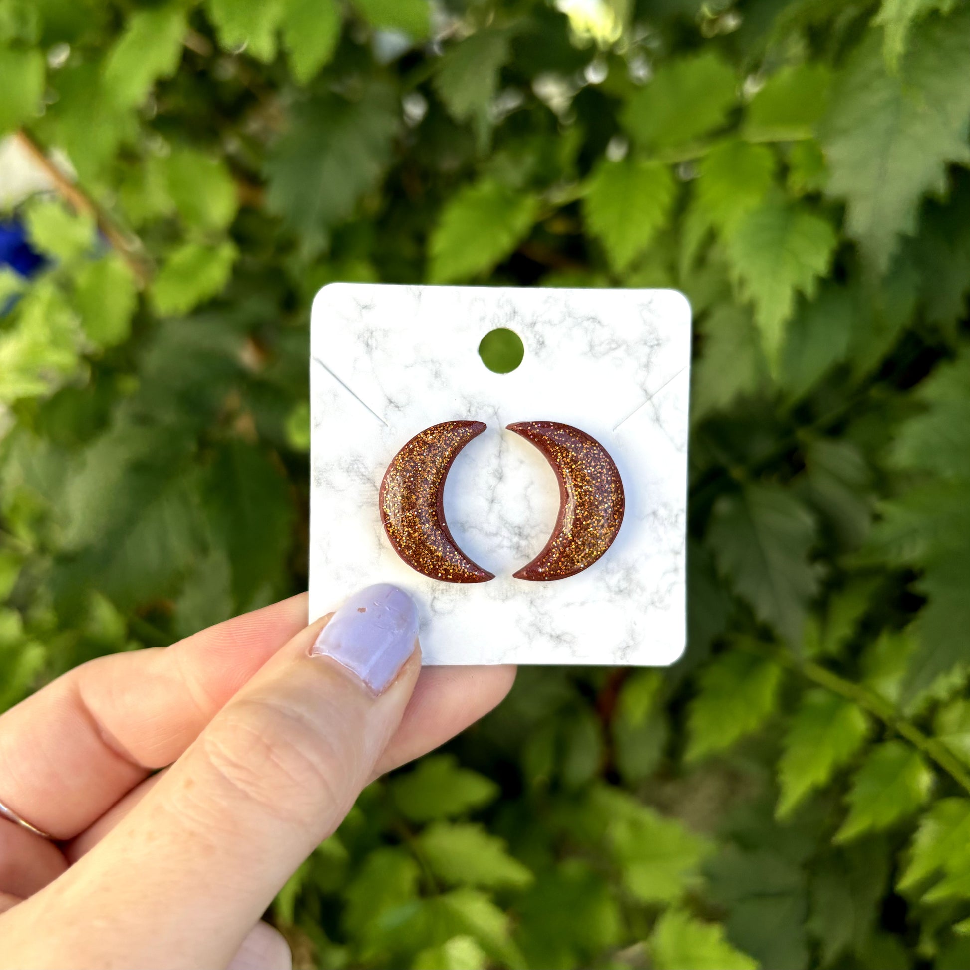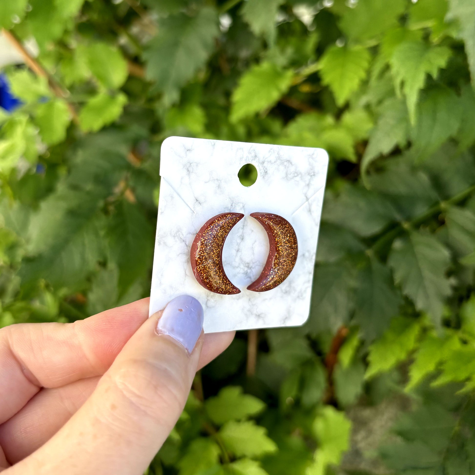Red & Gold Moon Polymer Clay Stud Earrings Handmade