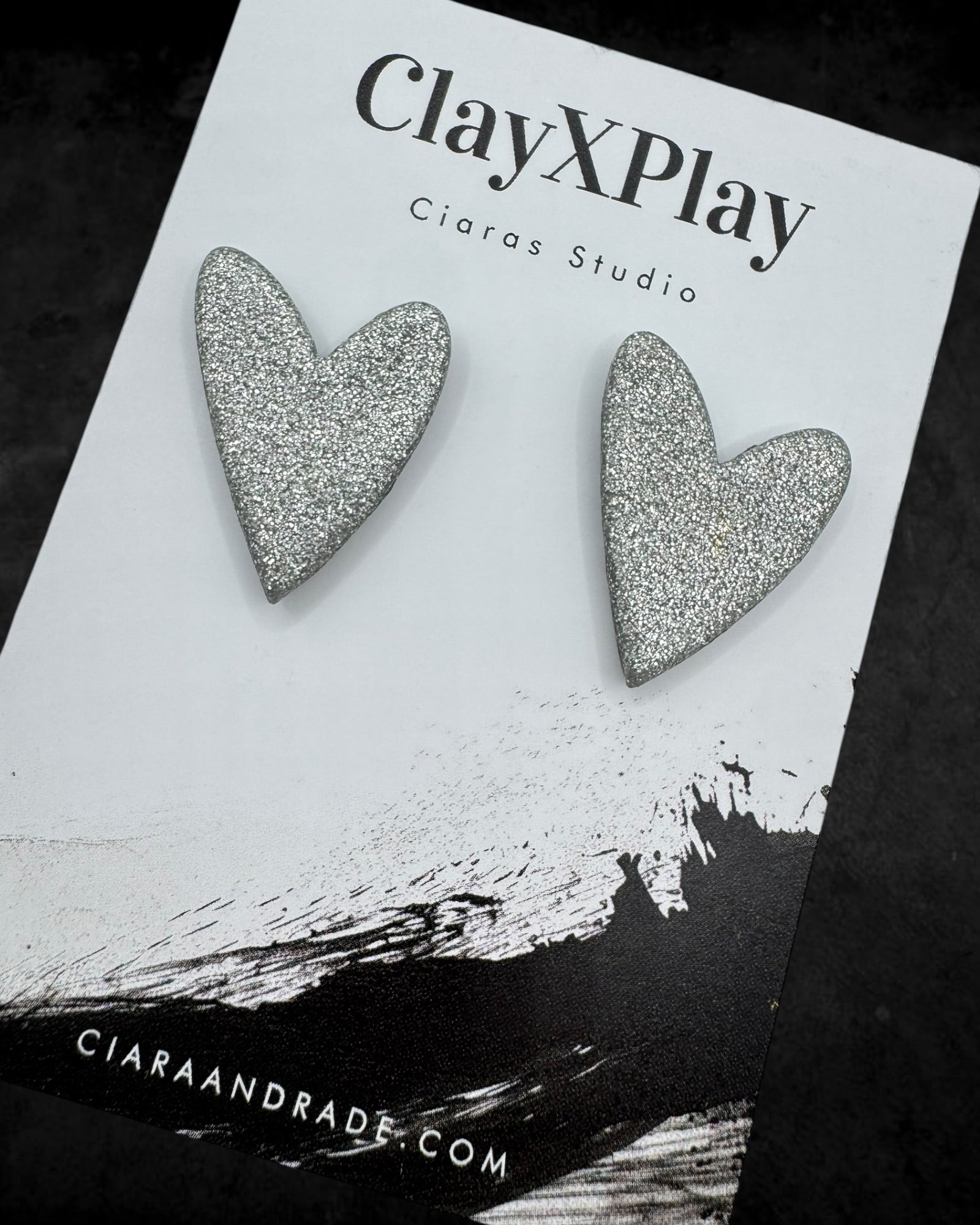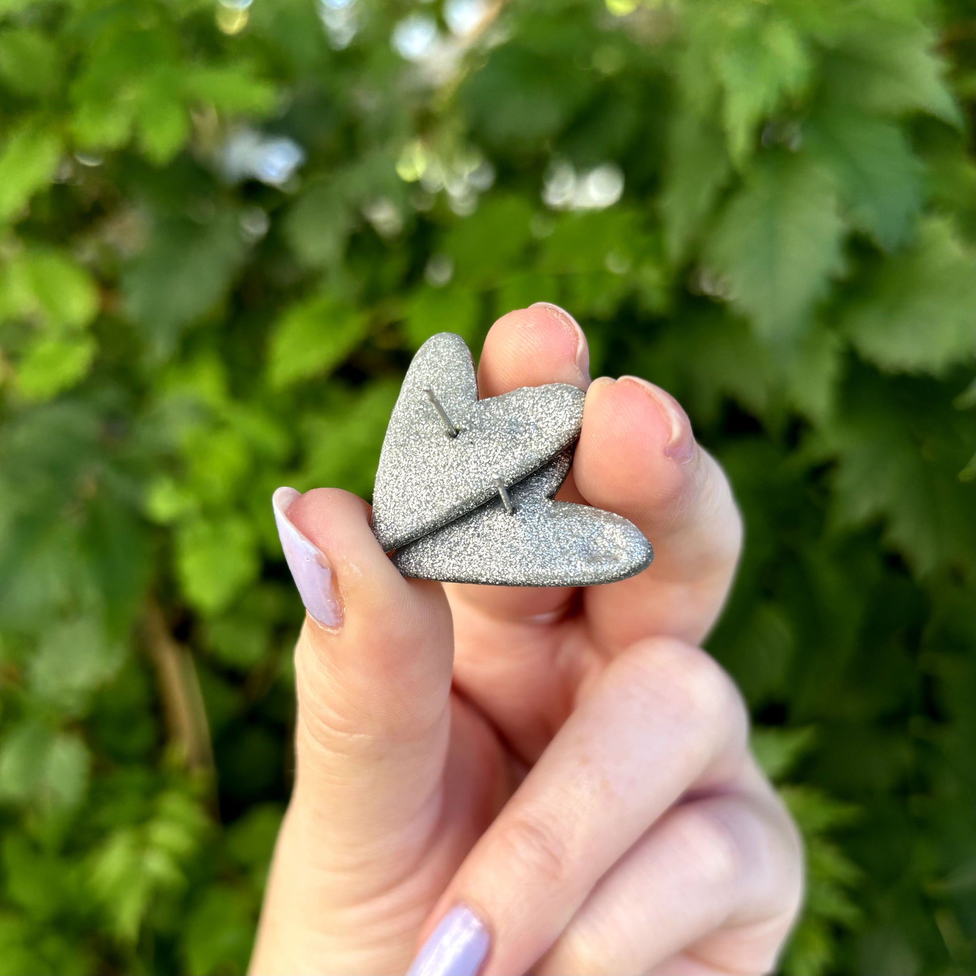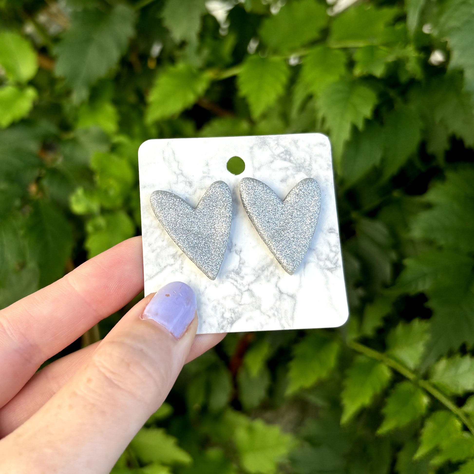 Silver Medium Polymer Clay Heart Stud Earrings Handmade
