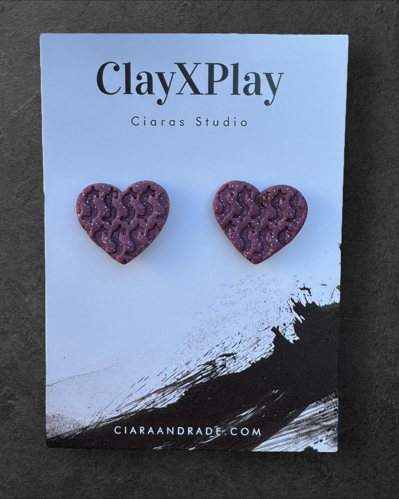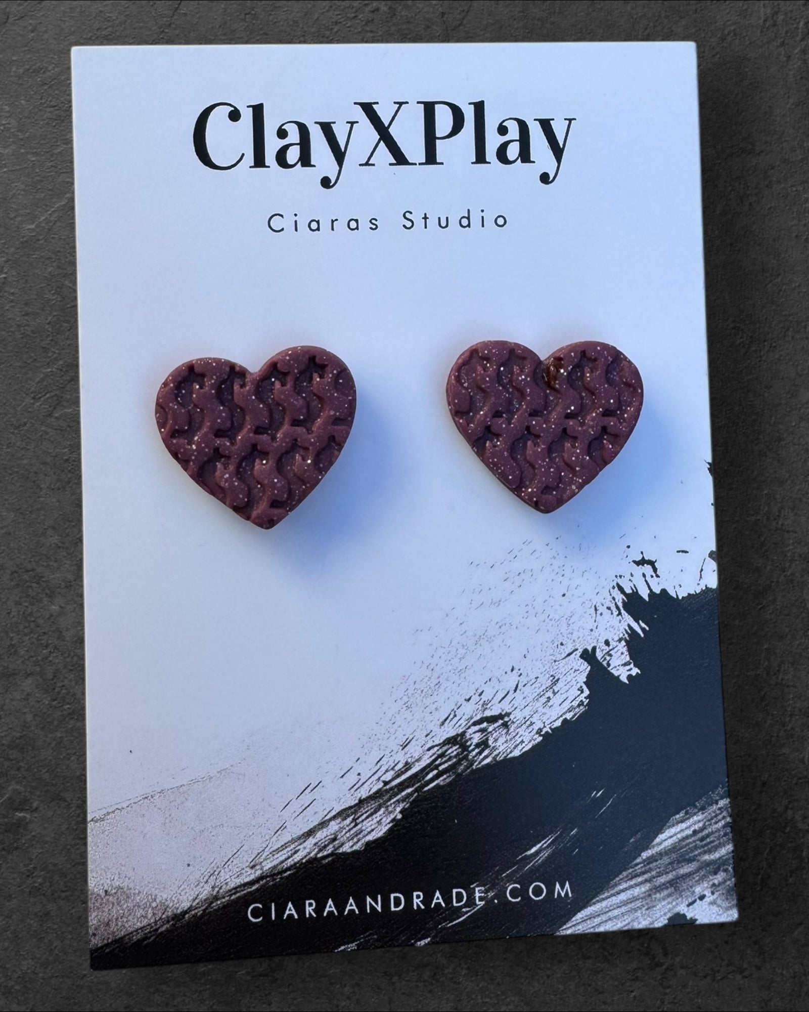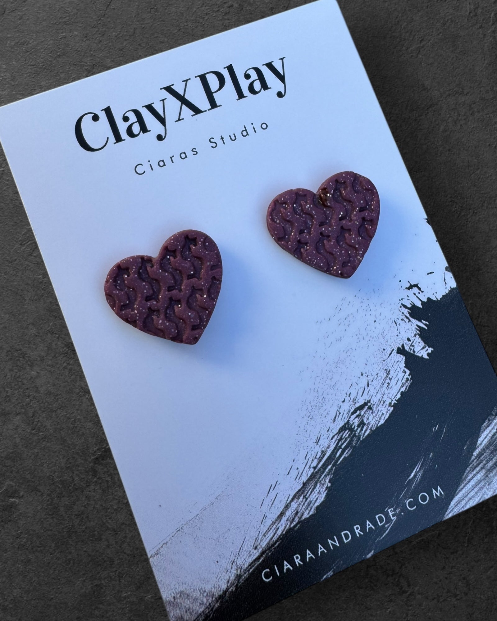Money Magic Maroon Medium Polymer Clay Heart Stud Earrings Handmade