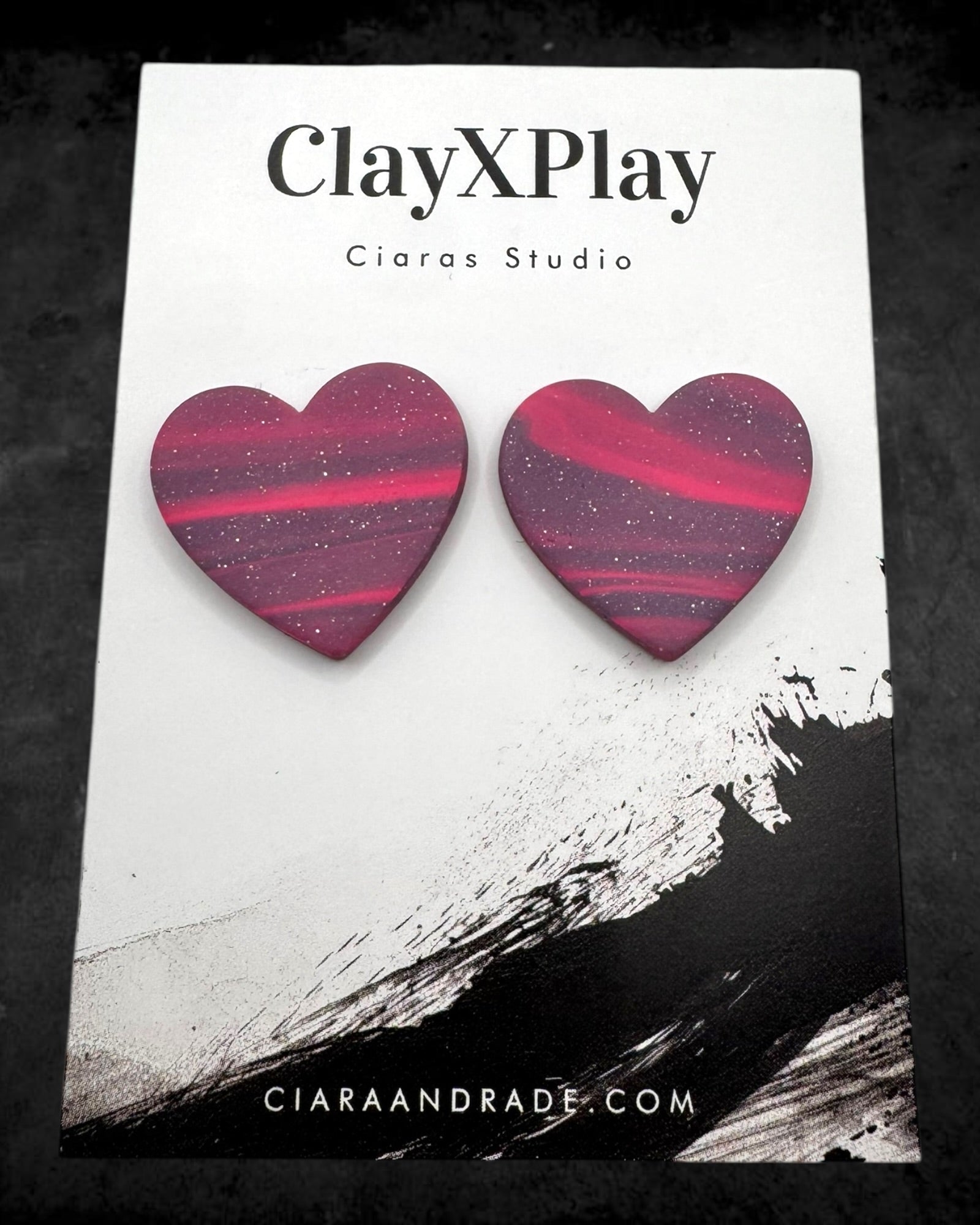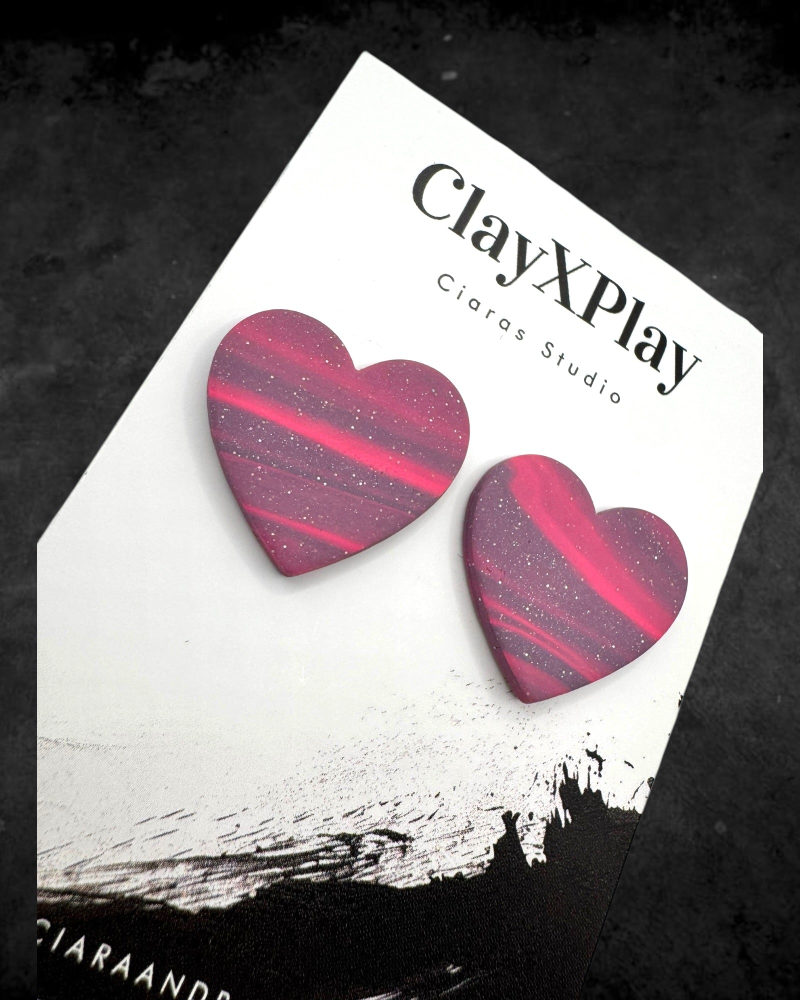 Pink & Purple Polymer Clay Heart Stud Earrings XL Handmade