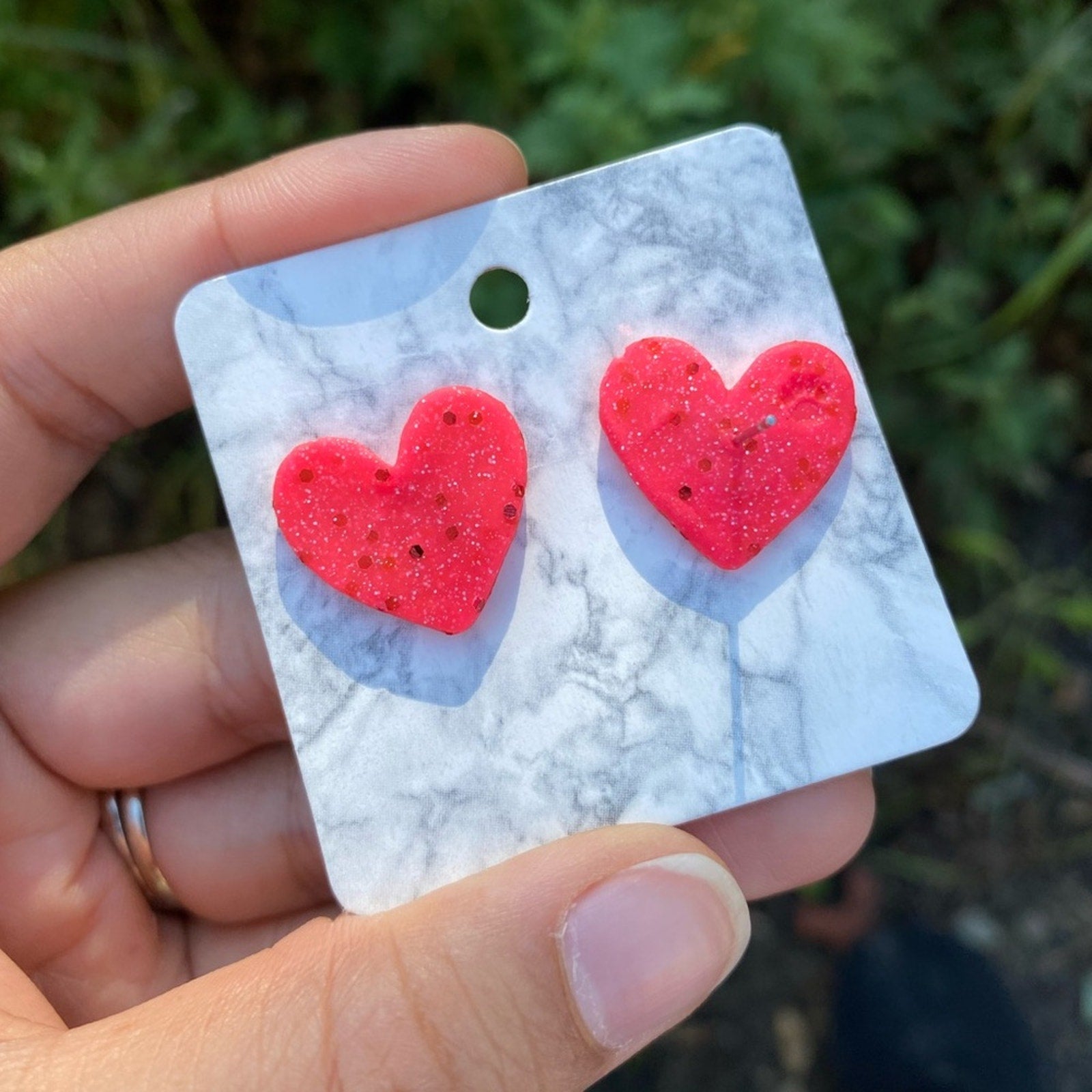 Pink & Red Glitter Medium Polymer Clay Heart Studs Handmade