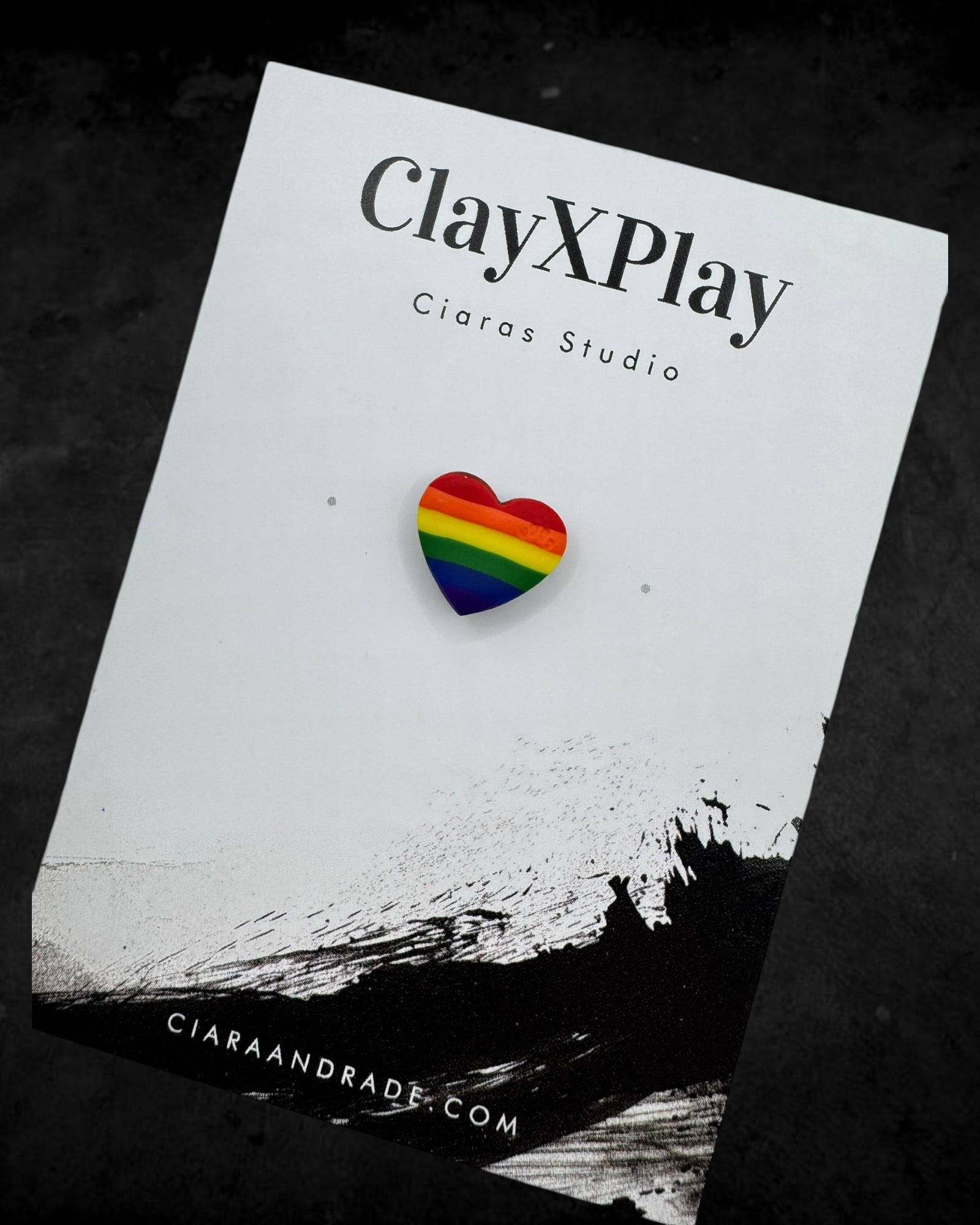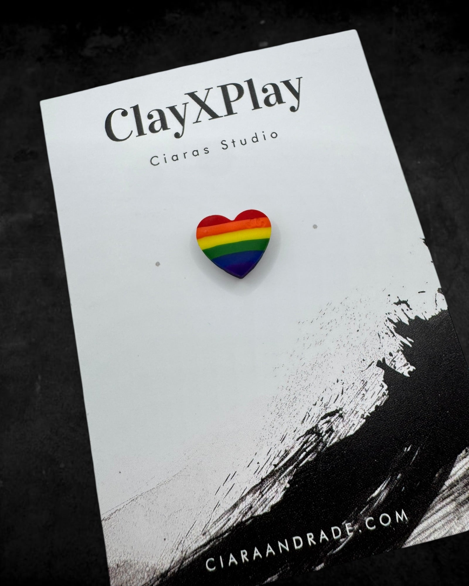 Rainbow Polymer Clay Mini Heart Pin Handmade