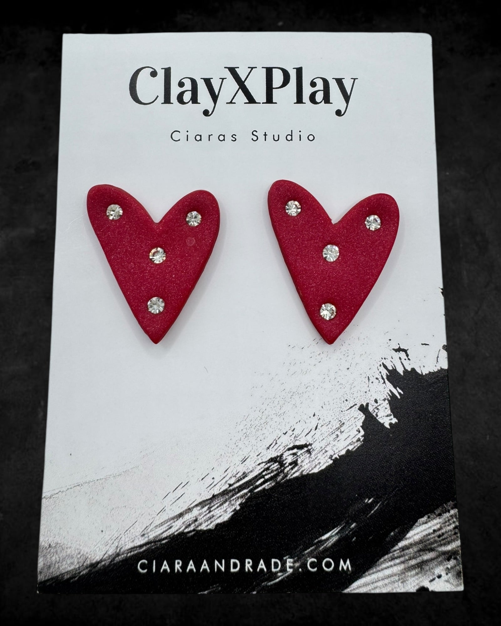 Red Diamond Medium Polymer Clay Heart Stud Earrings Handmade