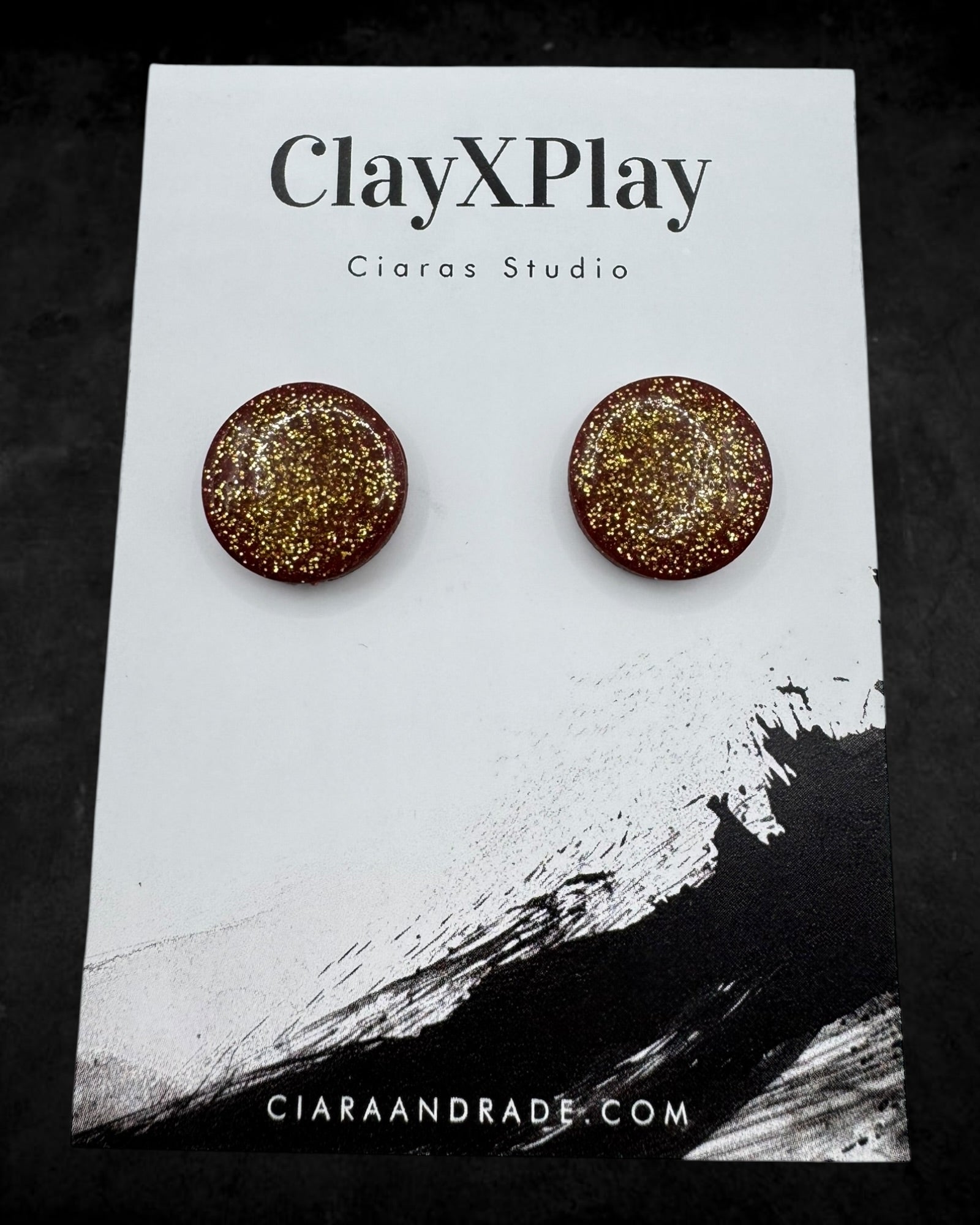 Red Gold Glitter Large Round Polymer Clay Stud Earrings Handmade