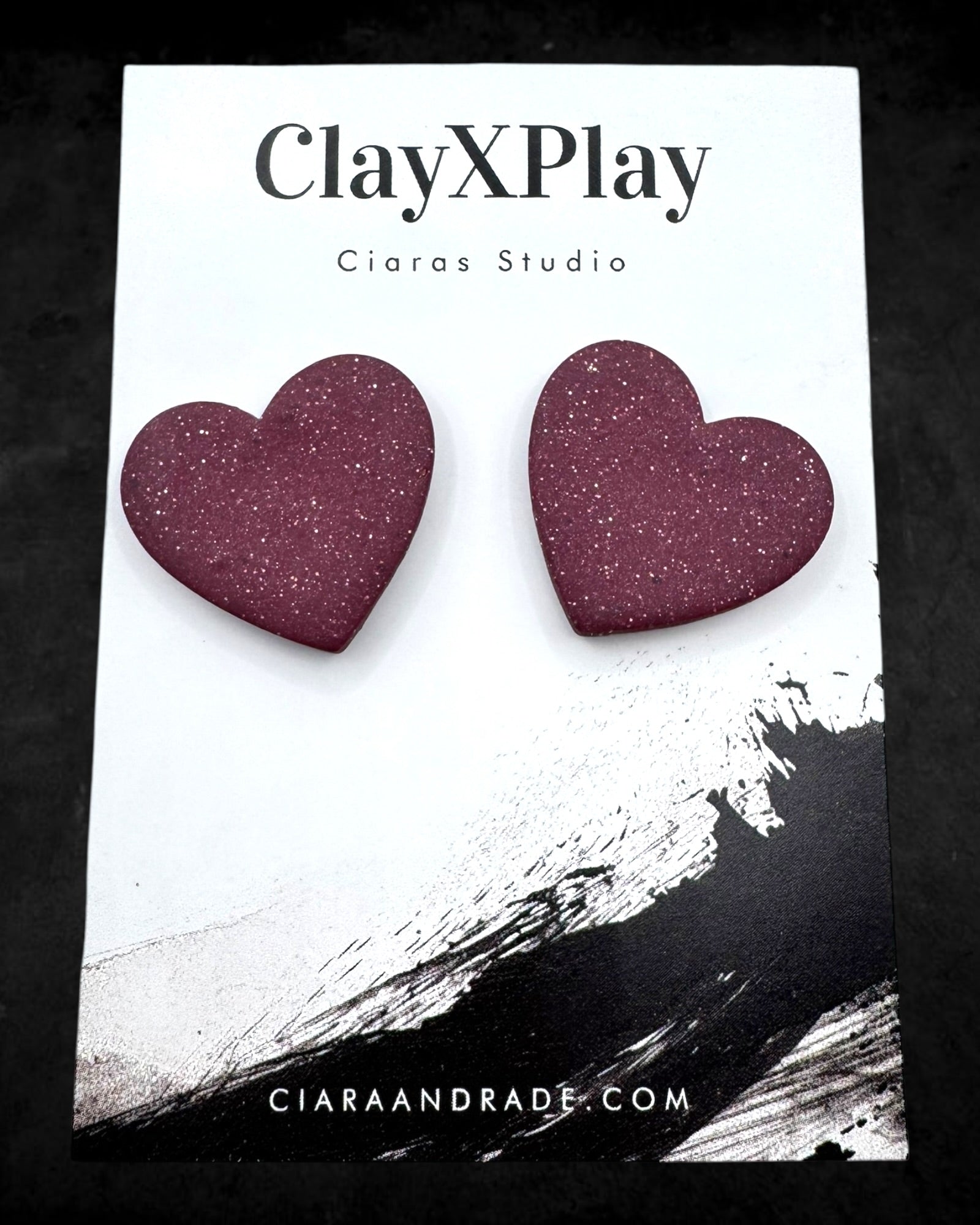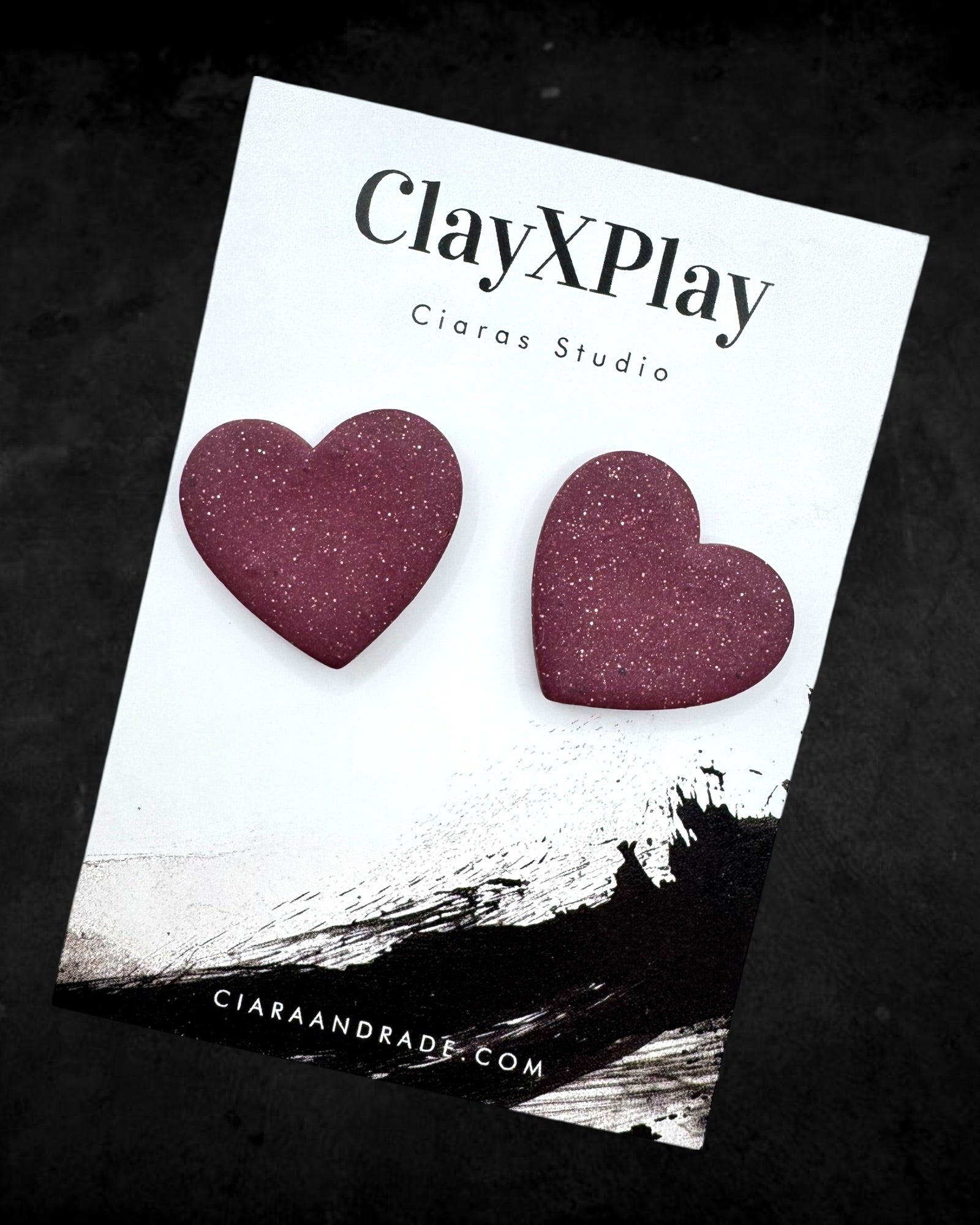 Red Polymer Clay Heart Stud Earrings XL Handmade