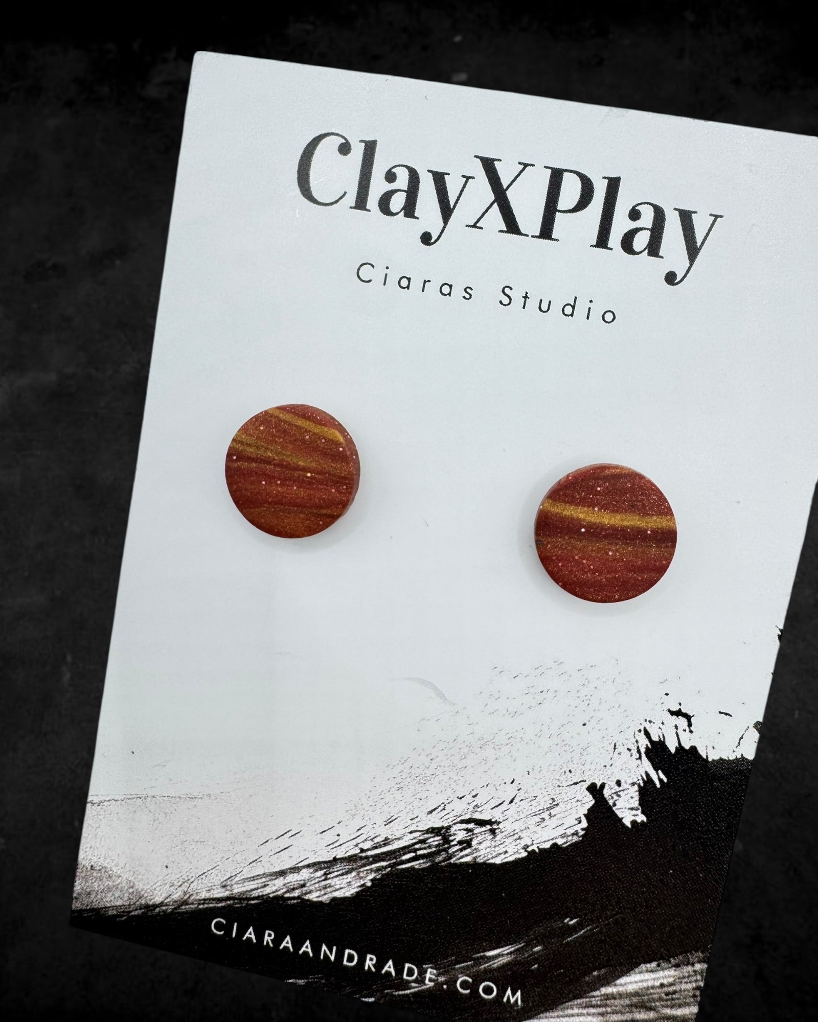 Red & Yellow Small Round Polymer Clay Stud Earrings Handmade