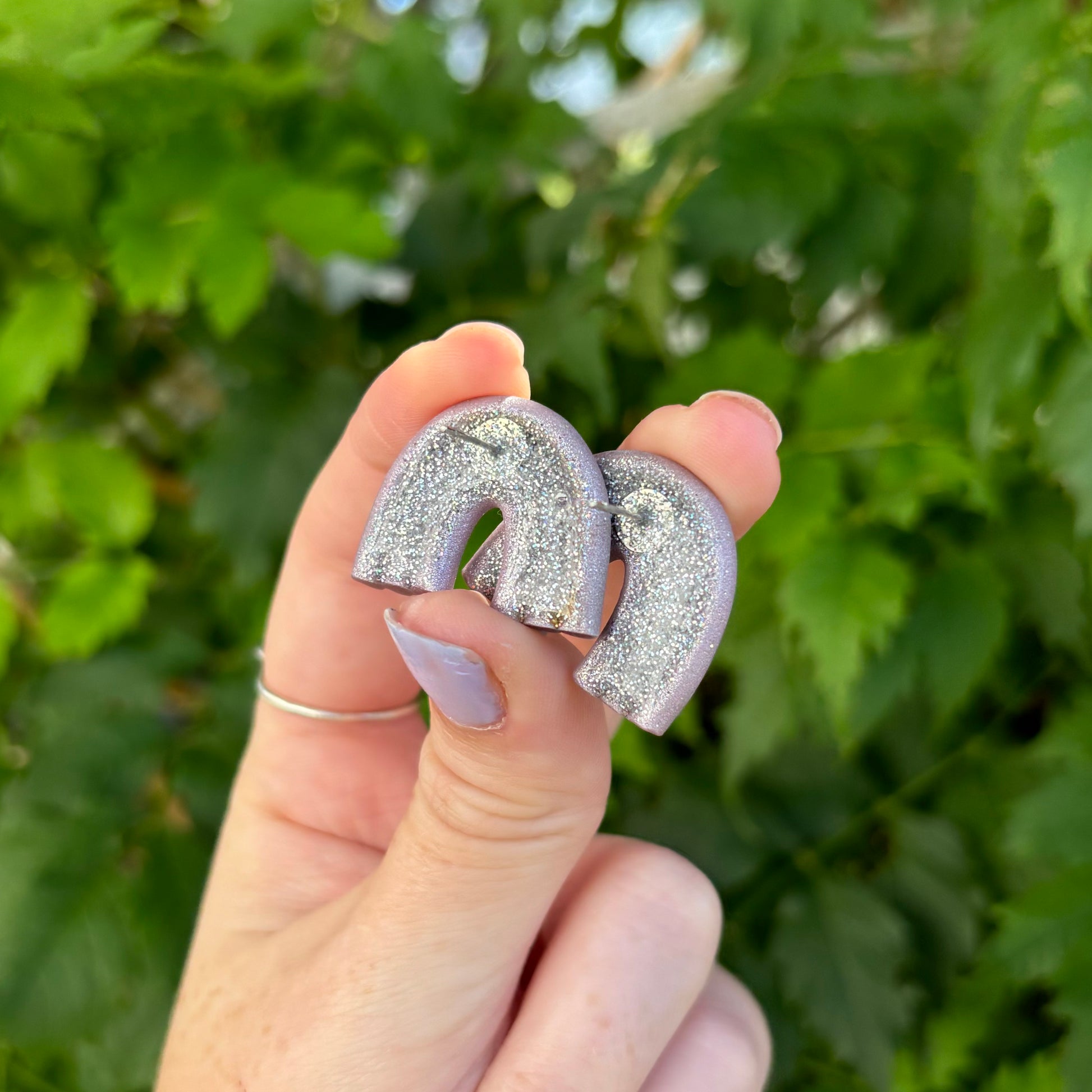 Purple Rainbow Polymer Clay Large Stud Earrings Handmade